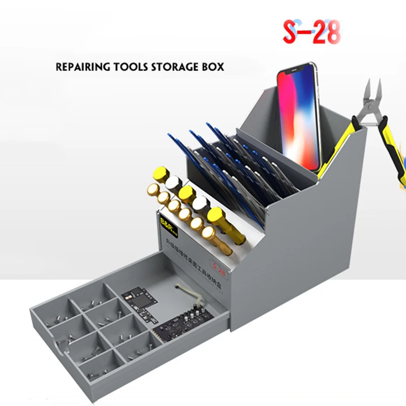 lprCPjtWgЗдесь вы сможете купить B&R S-28 Mobile Phone Maintenance Tool Sorting Box Can Hold Tweezers Screwdriver Chip Storage Box Desktop Sorting Storage Rack с бесплатной доставкой до вашего почтового отделения.