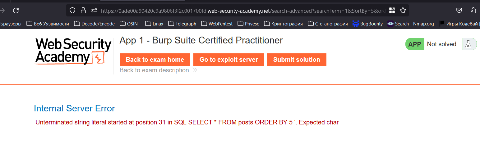 Точка внедрения немного сложнее. В данном случае в ORDER BY попадает числовое значение из соседнего параметра, инъекции в нём нет, можно подставить только числа 3 и 5. Эксплуатация уязвимости осуществляется через запятую, а точнее:
