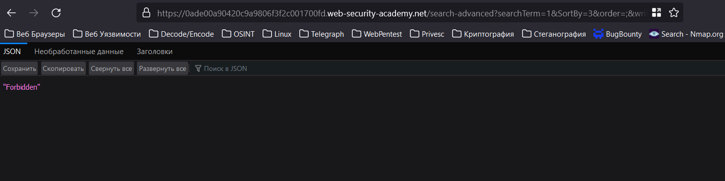 При попытке эксплуатации отправляет меня на WAF. Необходимо придумать обход. Протестировав различные способы байпаса, я пришёл к полезной нагрузке в виде: