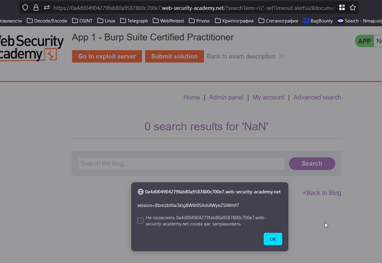 Но с ней у меня не получилось подобрать возможность захвата сессии. Вдохновившись статьей о байпассах XSS, я встретил возможность обойти скобки в виде: