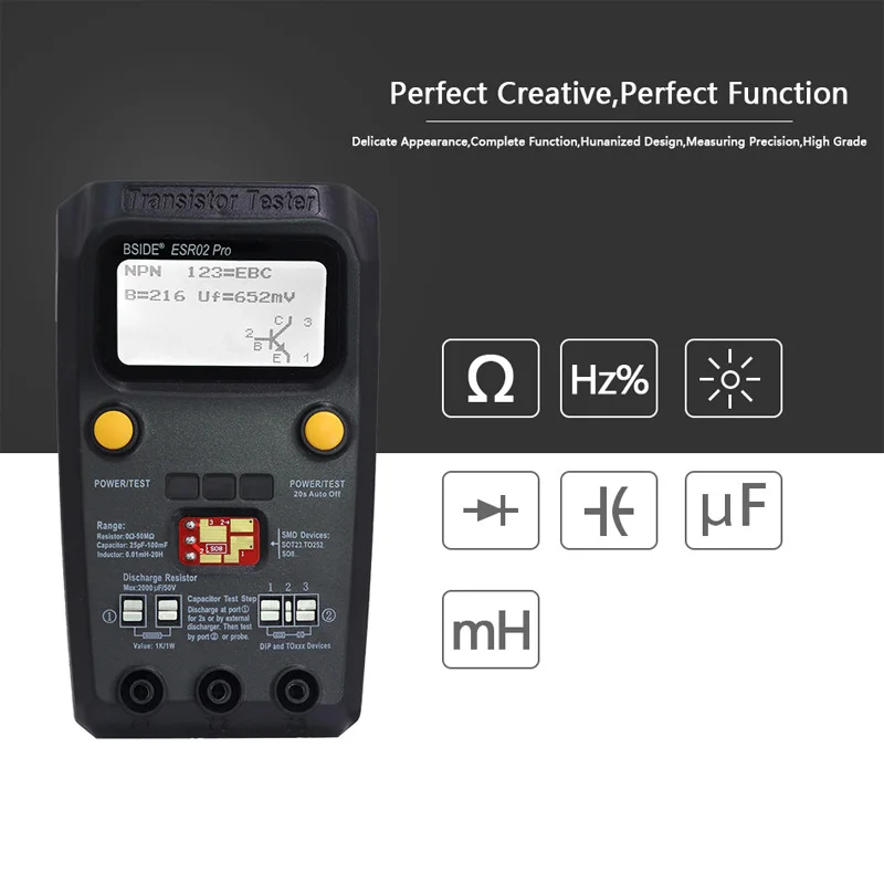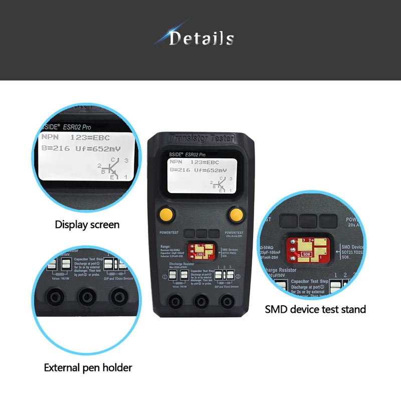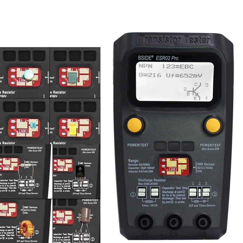 BSIDE Digital Transistor ESR02 PRO Tester SMD Components Diode Triode Resistor Capacitor Inductor Meter Multimeter with Tweezers - Купить с бесплатной доставкой
