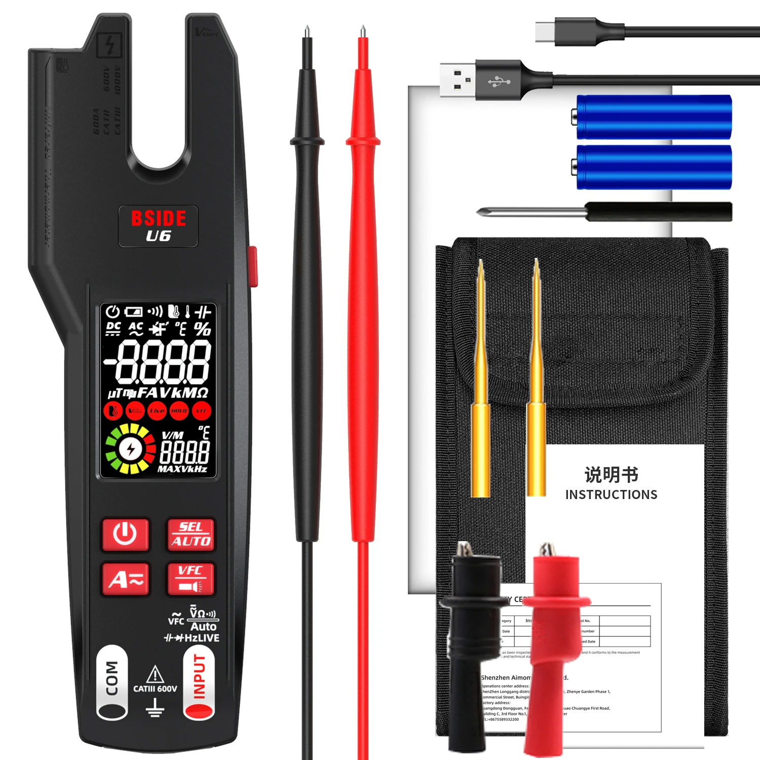 ZczzTlxoHere you can buy BSIDE Profesional Fork Meter 9999 Counts USB Charge Electrical Tester Clamp meter True RMS 600A Digital DC AC Clamp Meter NCV U6 with free delivery to your post office.