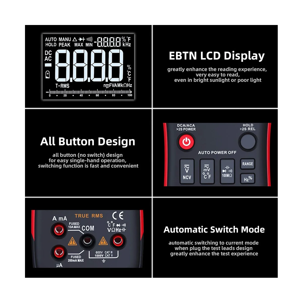 BSIDE ZTX Digital Multimeter T-RMS Auto Range EBTN LCD DC/AC Voltmeter Ammeter Current Capacitor Ohm Temp Hz NCV Tester - Купить с бесплатной доставкой