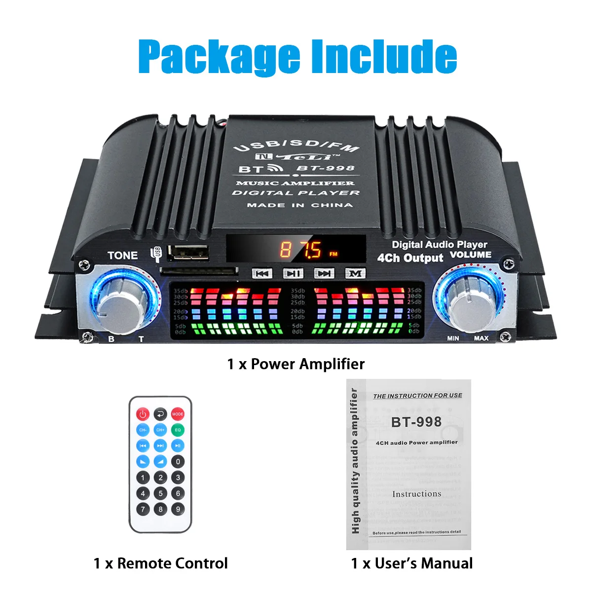 MNpJAyNOlLooked for BT-998 12V/220V 4CH Home Digital Amplifiers Hifi Stereo Audio Bass bluetooth Power Amplifier FM USB SD LED Subwoofer Speaker for a long time, but could not find it? Bring to your attention BT-998 12V/220V 4CH Home Digital Amplifiers Hifi Stereo Audio Bass bluetooth Power Amplifier FM USB SD LED Subwoofer Speaker with the best price!
