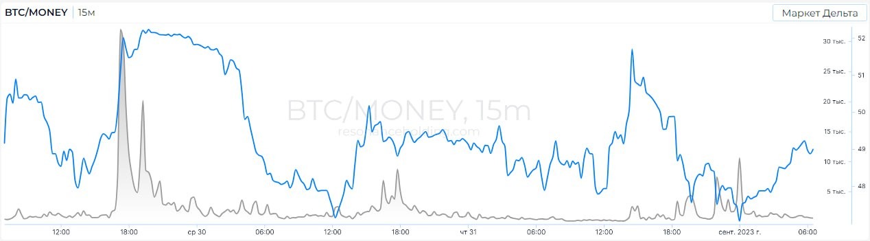 According to MS, it is possible to note the rarity of a market buyer, perhaps few people are interested in BTC in this price category. The seller keeps the balance on the buyer's side more often and more stable, but the latter rarely uses it.