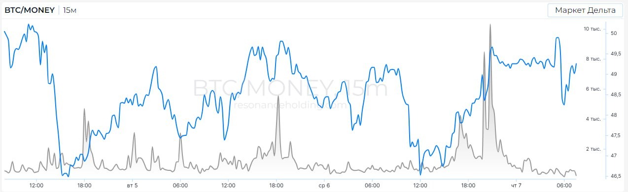 По МС видим, что произошёл обмен объёмов, а из-за разряженного стакана повысилась волатильность.