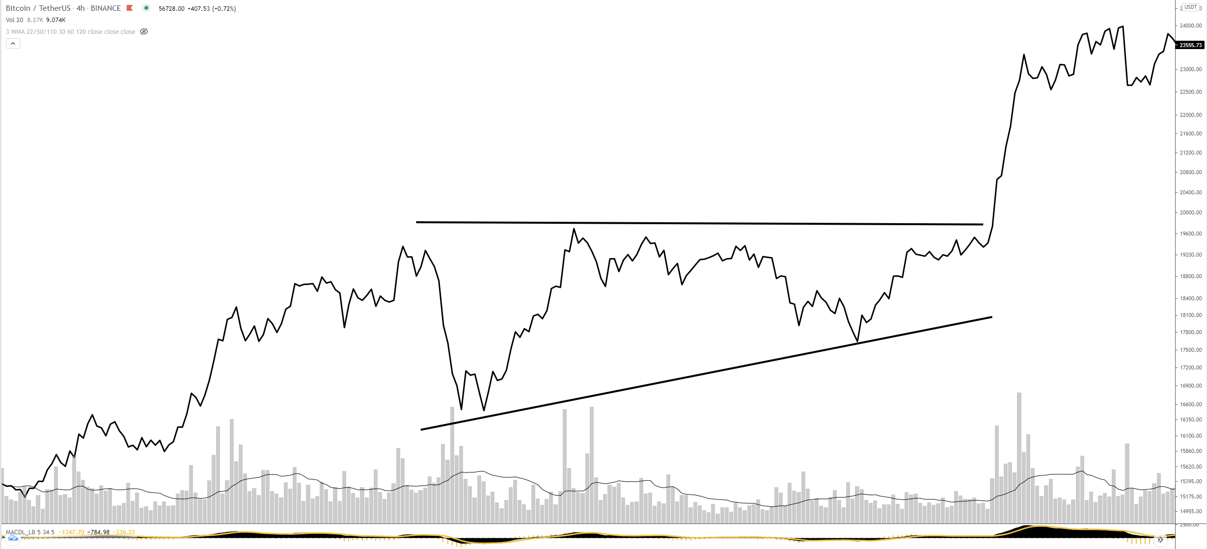 We can see that relative to the dynamic support we are maintaining the trend and that's good. It remains to overcome the resistance at 60k