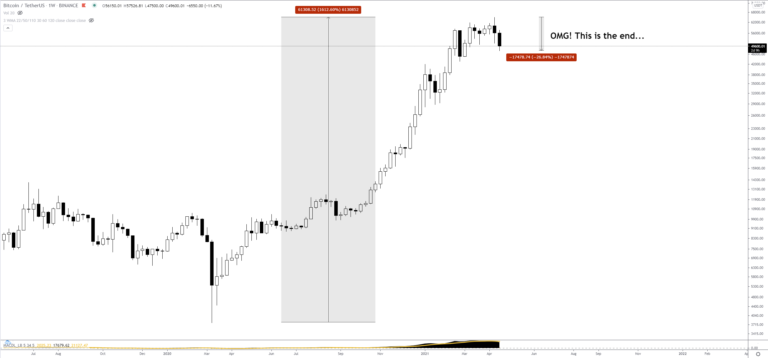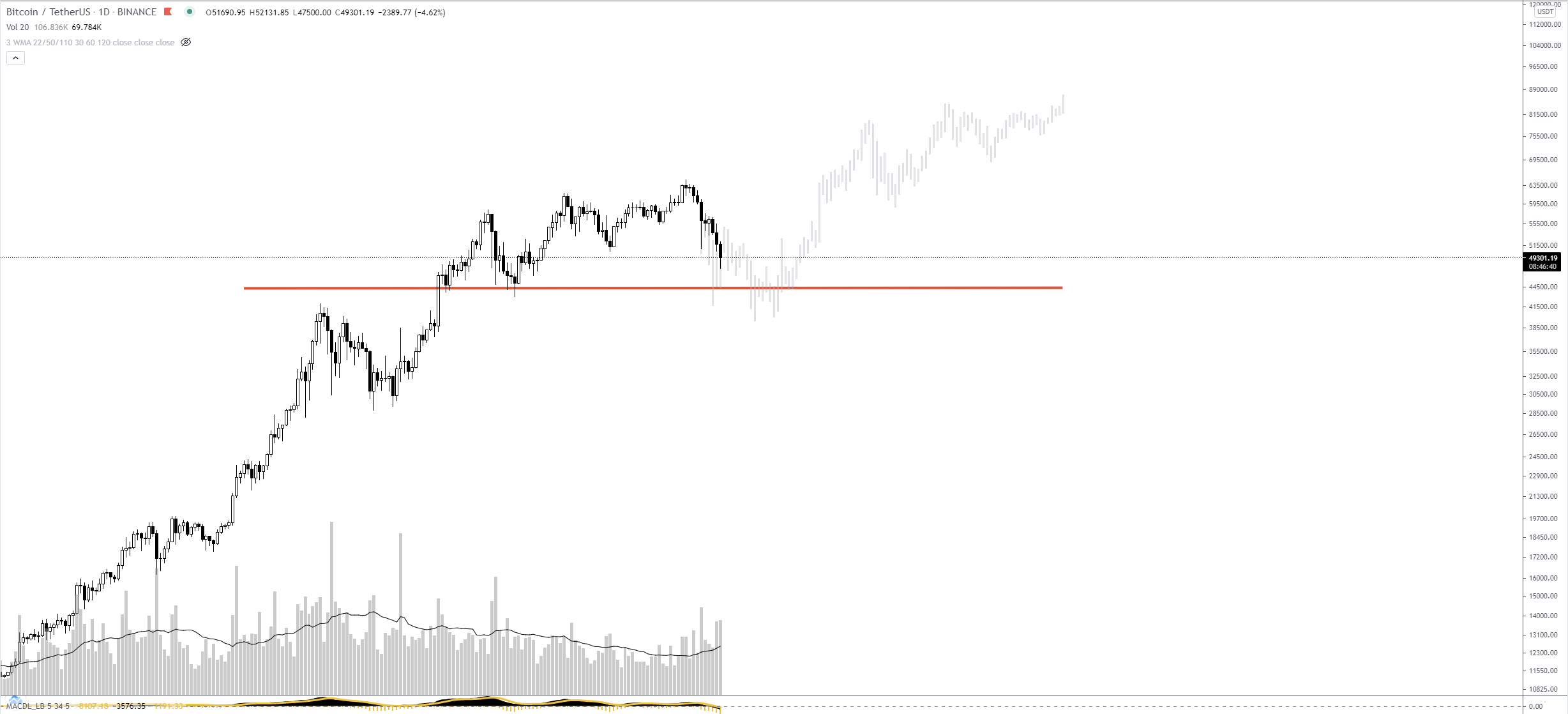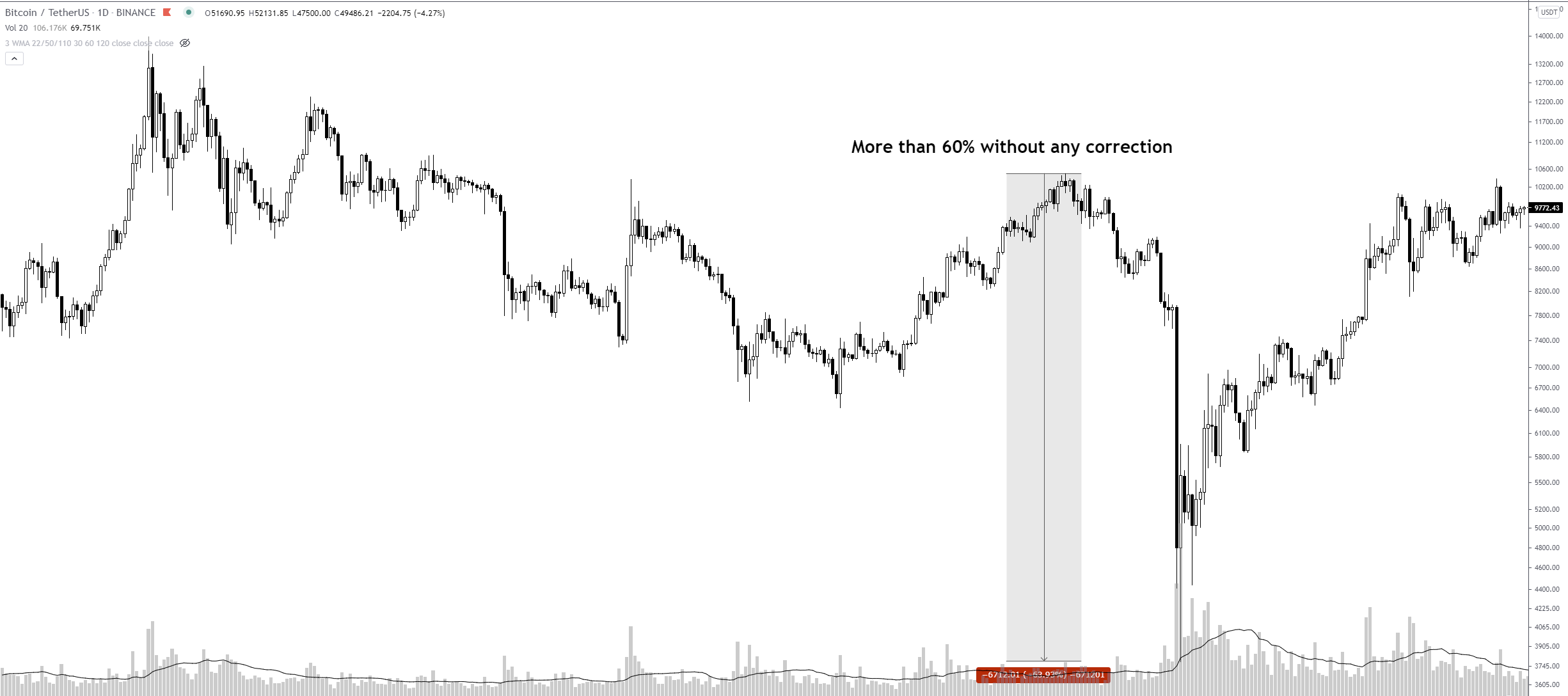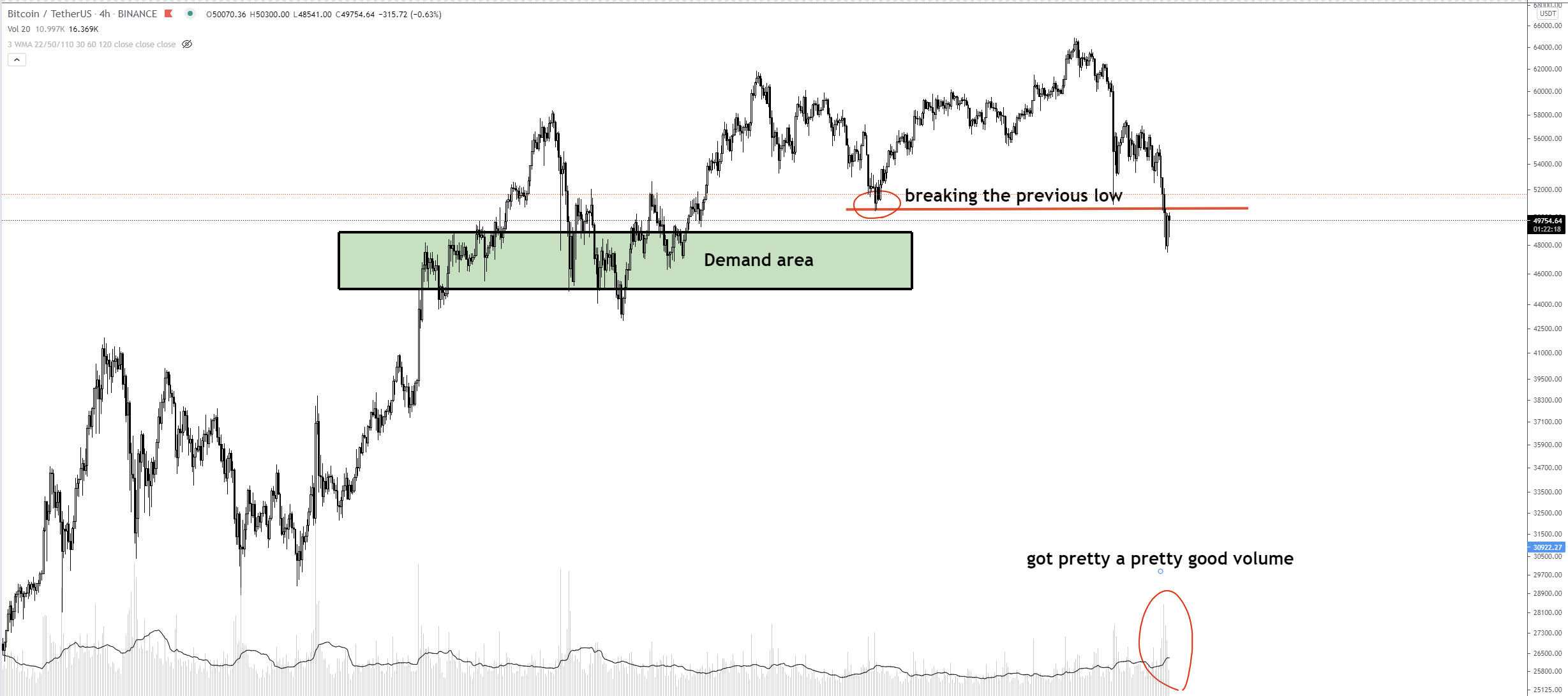 Let's imagine Bitcoin goes into a 'free fall' and goes down without a pullback to the next demand area around 30k. It's a cryptocurrency and that happened on Feb 20. But it is the exception to the rule. And now Bitcoin is a bit "heavier" so a pullback is more than 70% likely