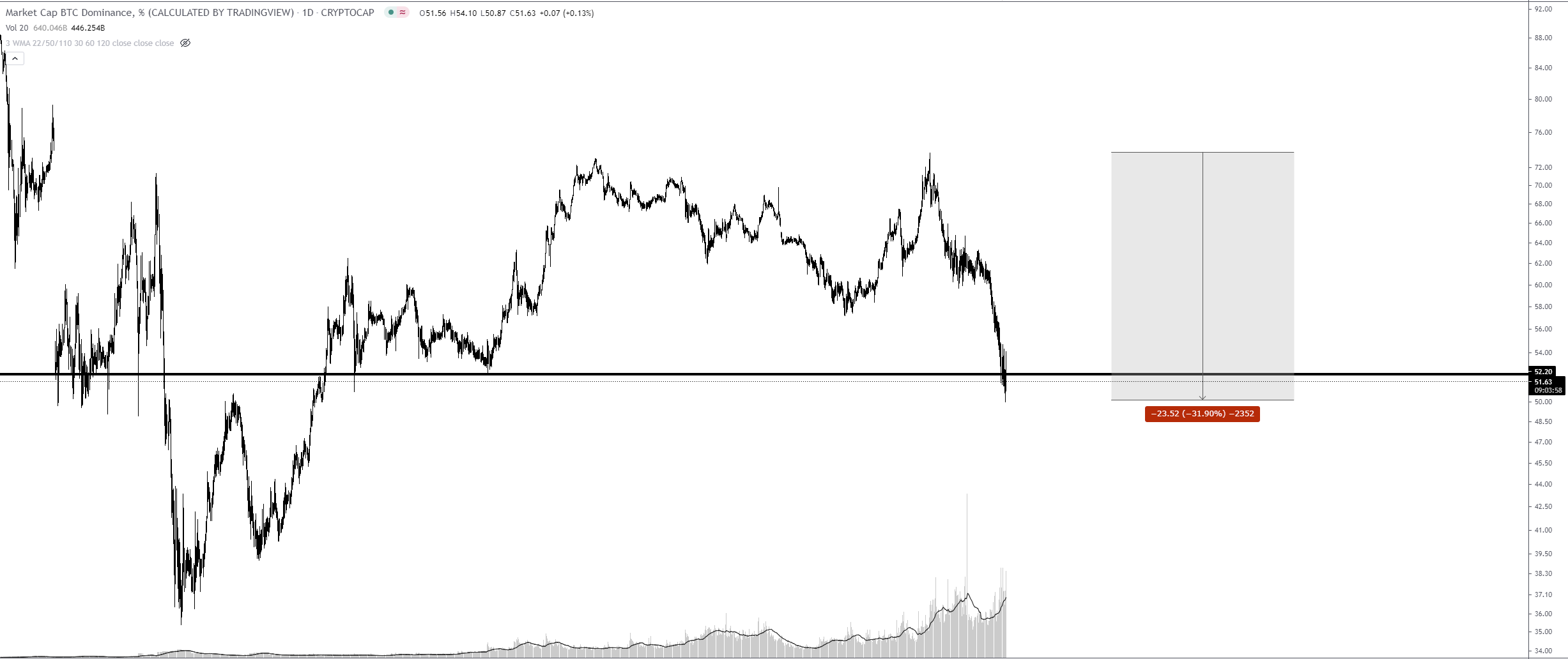 At the same time Bitcoin's dominance is declining, which is odd, but let's not focus on that.
