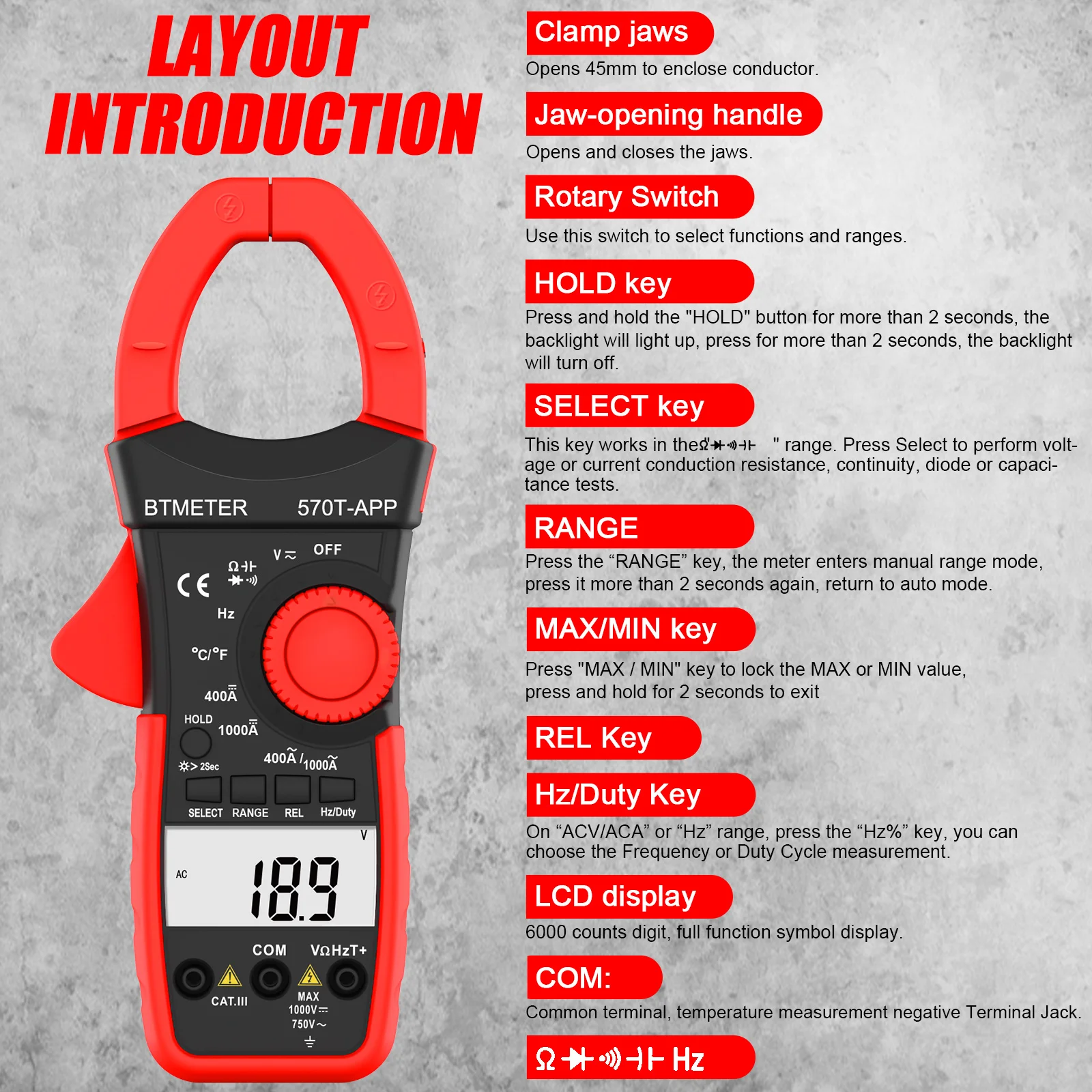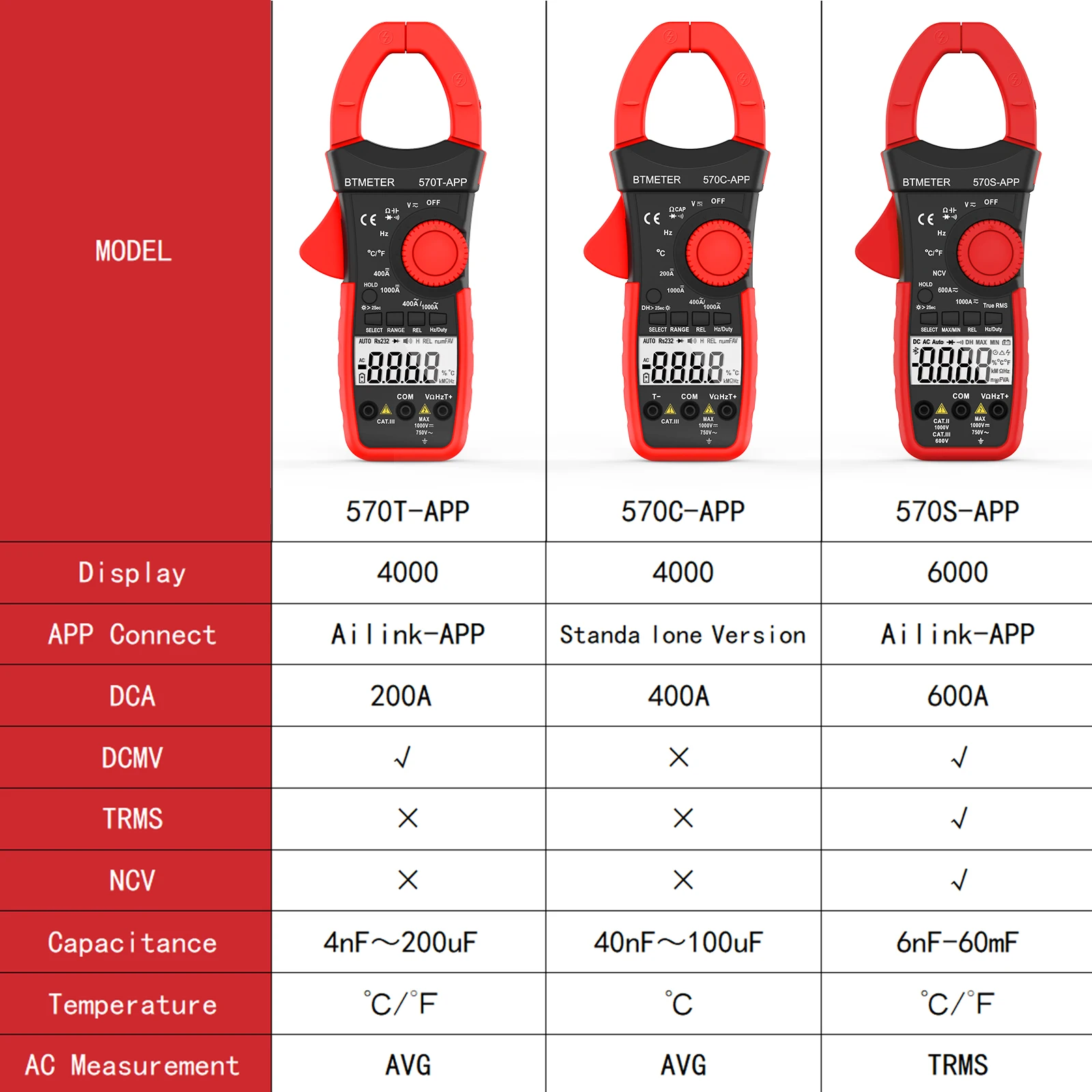 BTMETER 570C-APP Digital Clamp Meter Multimeter 4000 Counts Auto/Manual Ranging,Bluetooth Amp Meter for Electrical HVAC Ammeter - Купить с бесплатной доставкой