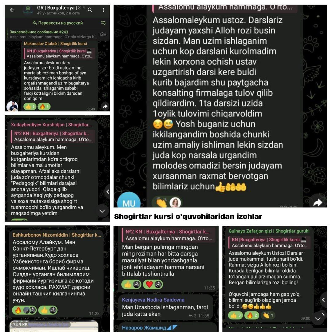 Buxgalteriya Shogirtlar kursimizdagi o'quvchilar izohi. 👇