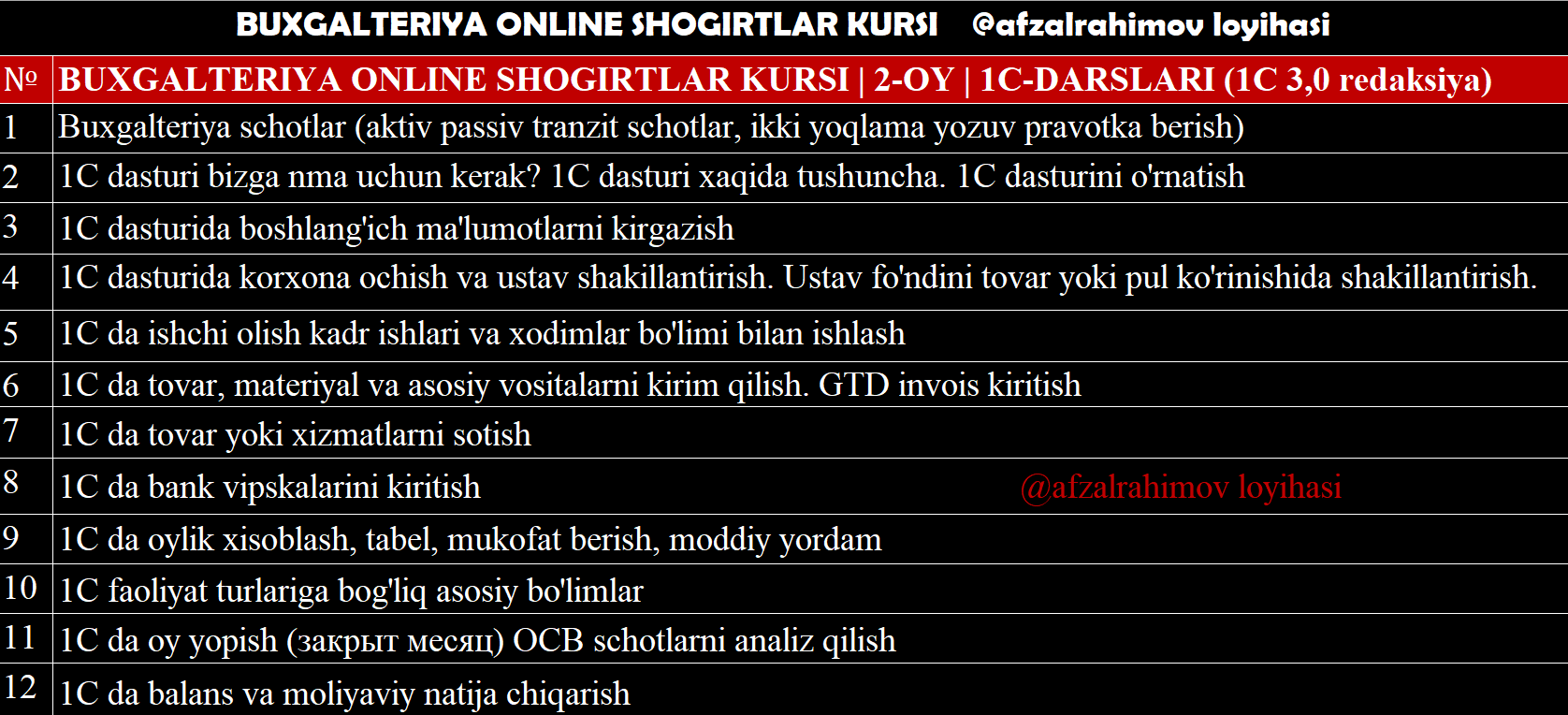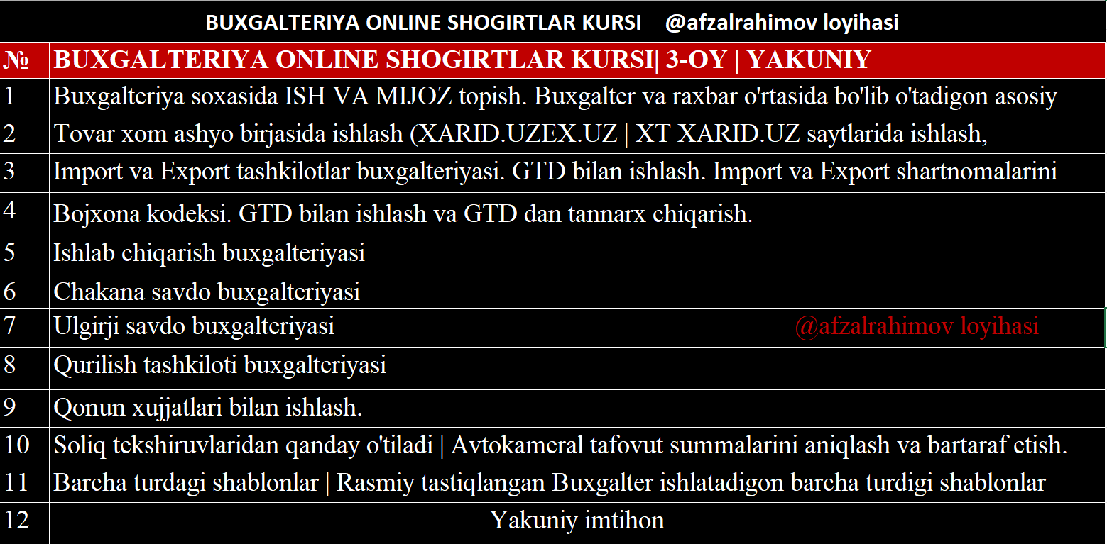 2-Oyda o'tiladigan darslar ro'yxati:👇