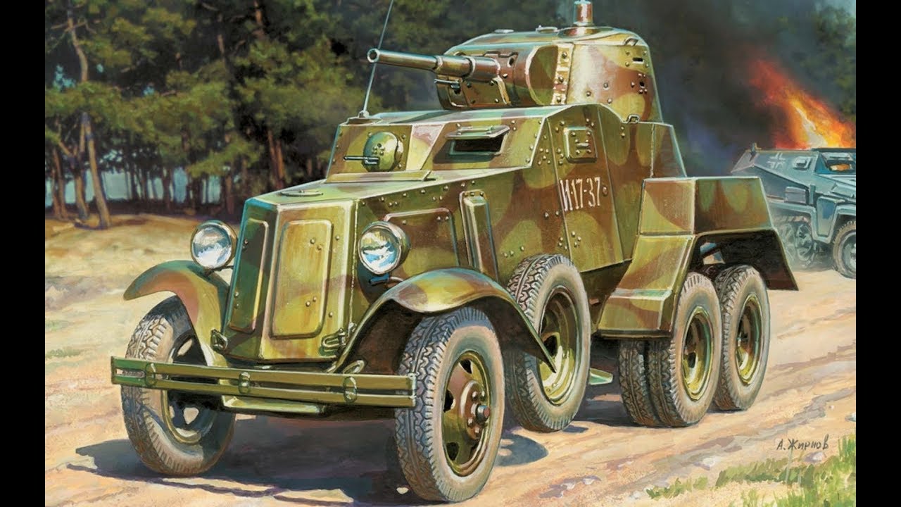 Захваченный немцами советский бронеавтомобиль БА- 10 . Советский средний бронеавтомобиль БА- 10 был выпущен в 1938 году . Он был защищен противопульным бронированием (лоб корпуса 10 -15 мм, борт корпуса и корма — 10 мм, крыша 6 мм . . .