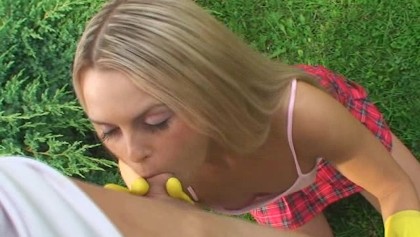 Outdoor Handjob mit blonder Göre