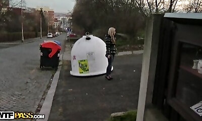 Babe with a slit piercing screwed on the floor