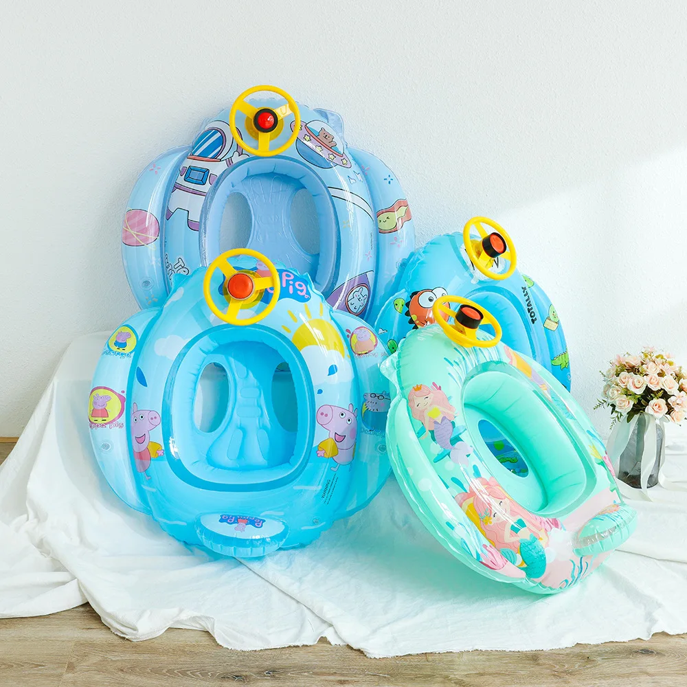 "Baby Infant Float Pool Swimming Ring with Steering Wheel Cartoon Nflatable Swimming Circle Seat Pool Toy for 2-6 Age Kid" * Buy Now Just For 5$