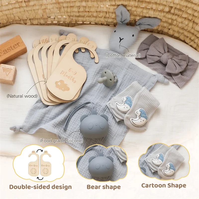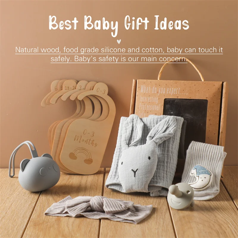 YXBuuKnjOHere you can buy Baby Rabbit Saliva Towel Set Hair Band Pacifier Storage Box Milestone Photography Props Newborn Gift Milestone Commemorative Set with free delivery to your post office.