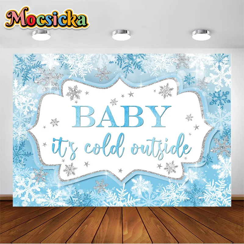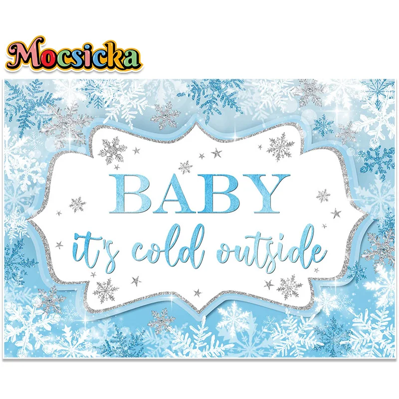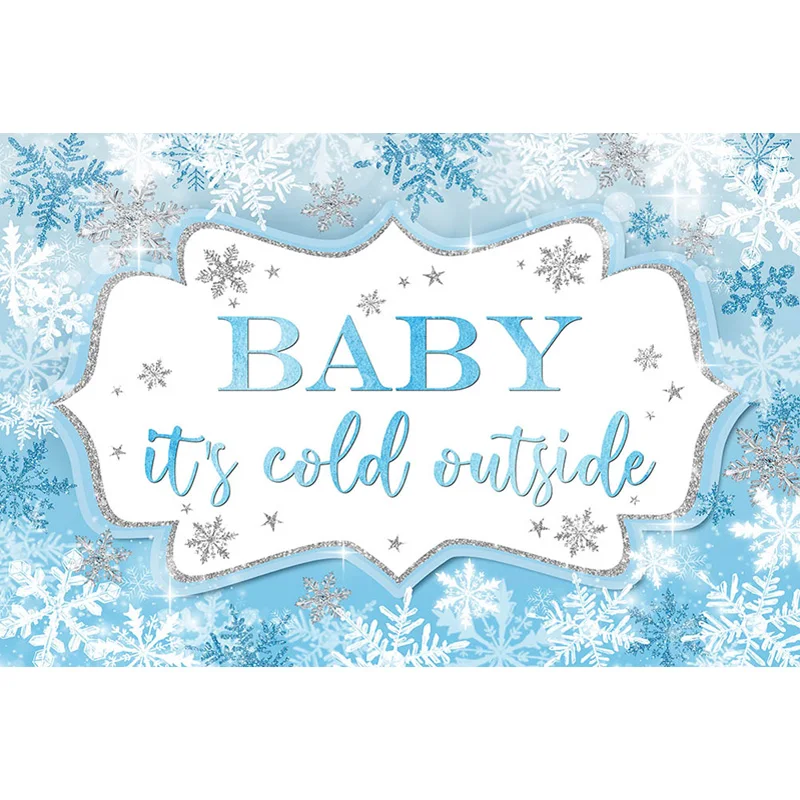 Baby its Cold Outside Backdrop Baby Shower Background Snowflakes Ice Crystals Children Portrait Photo Studio Text Customizable - Купить с бесплатной доставкой