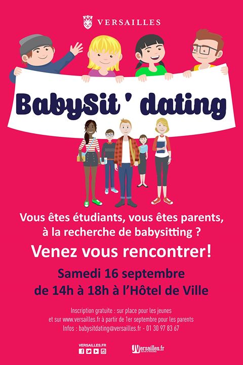 Babysit'dating : le rendez-vous des familles versaillaises À la Une Petite enfance / éducation Chaque année, avec plus de 200 parents et autant d'étudiants, la Ville de Versailles réitère son expérience de babysit'dating , le samedi 18 septembre, afin de mettre en relation parents en quête de babysitters et étudiants à la recherche . . .