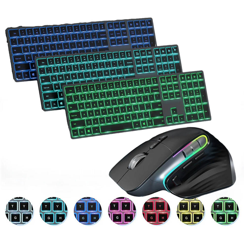 Backlit Bluetooth Keyboard for iPad iPhone Full Size Rechargeable Multi-device Sync Wireless Keyboard Set for IOS Windows PC - Купить с бесплатной доставкой