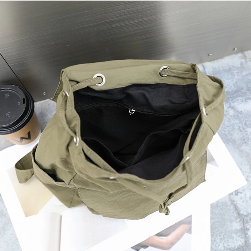 "Backpack Korean-style Nylon Casual Small Fresh Drawstring Pocket Student Schoolbag Solid Color Large Capacity Travel Storage Bag" * Buy Now With Free Shipping Just For $14