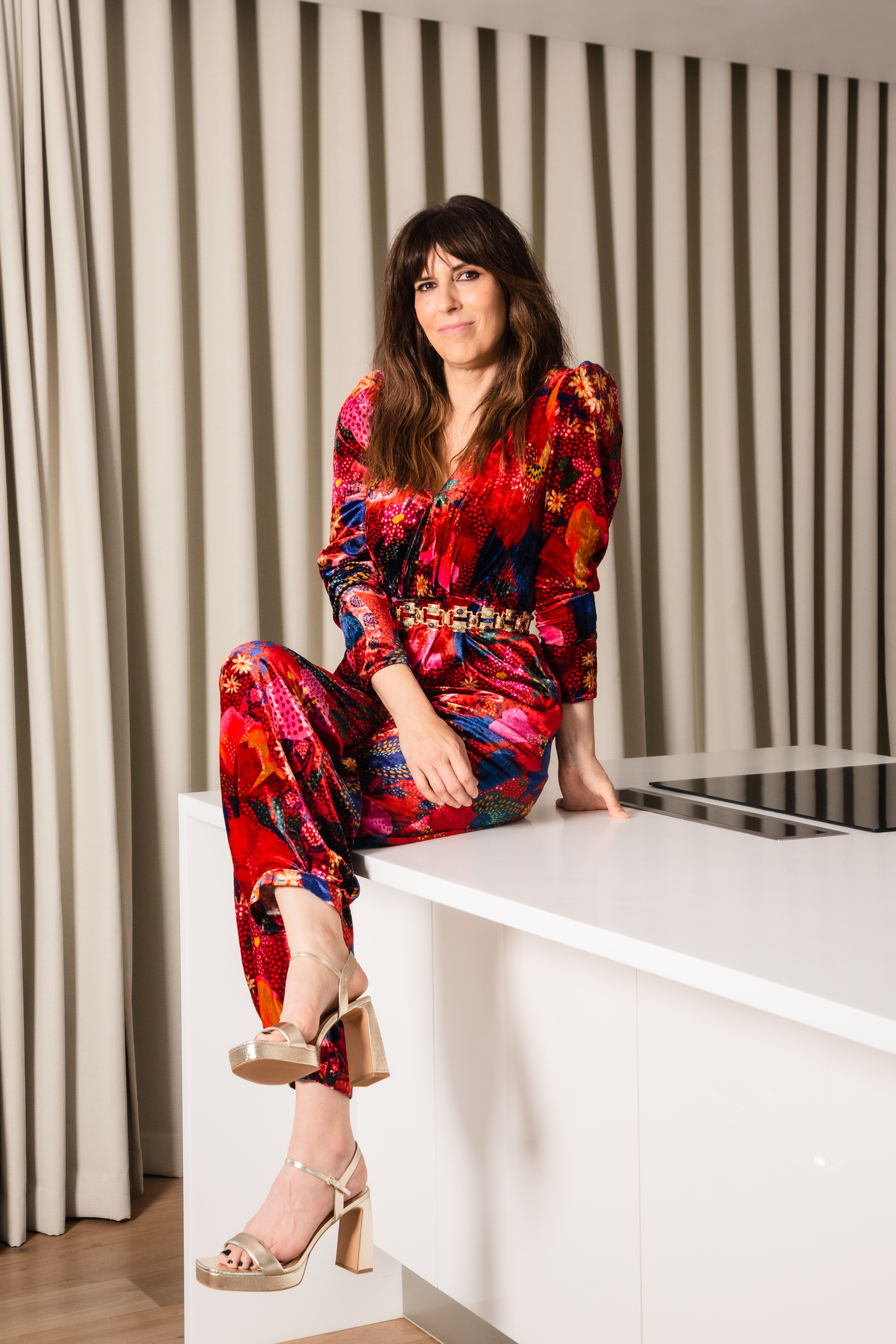 Long dark haired beauty rides dick on black sofa