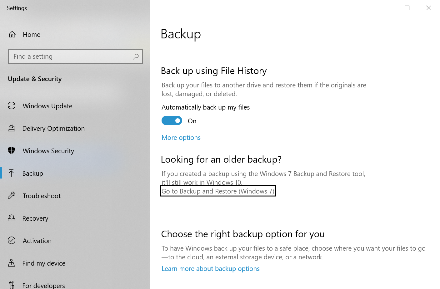 Backup options