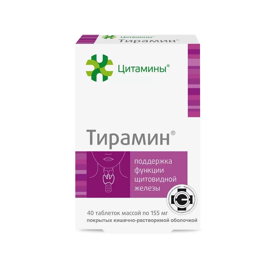 Тирамин 155 мг, таблетки, покрытые кишечнорастворимой оболочкой, 40 шт . от 579 ₽ Я принимала Тирамин после перенесенной операции на щитовидку . Хороший препарат - побочных эффектов нет, привыкания не вызывает . С ним чувствую себя намного лучше: меньше устаю, вес не растет, а еще заметила, что с Тирамином состояние кожи и волос стало лучше .