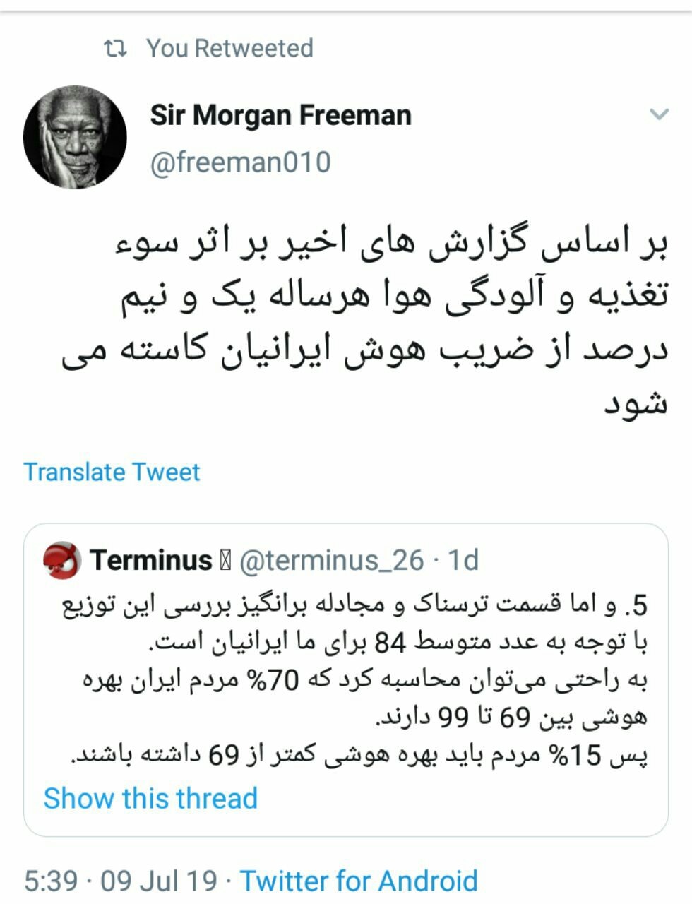 یک، مفهوم بهره هوشی را قبول داشته باشیم و دو، قبول کنیم بهره هوشی متوسط "ما" ایرانیان حدود 84 است.