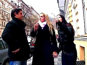 Jeune blonde baisée par deux mecs en ville