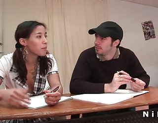 Une ado brunette chaude baise avec son prof