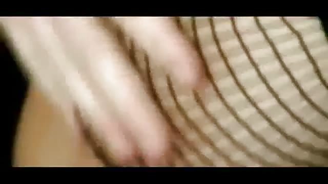 Trs belle anglaise en lingerie et en collants noirs se masturbe dans son salon