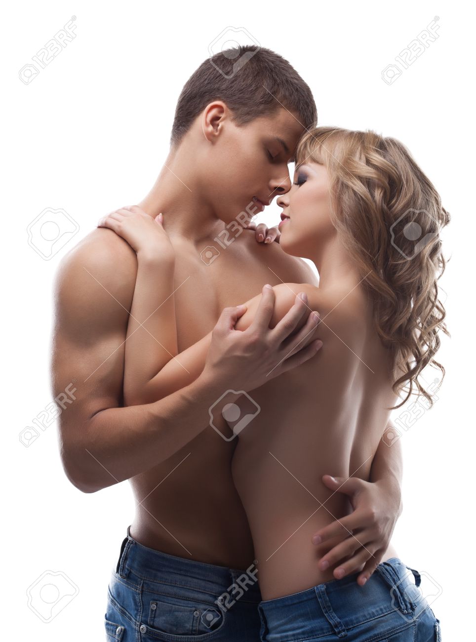 Deux jeunes cratures de rve se touchent et se lchent la piscine