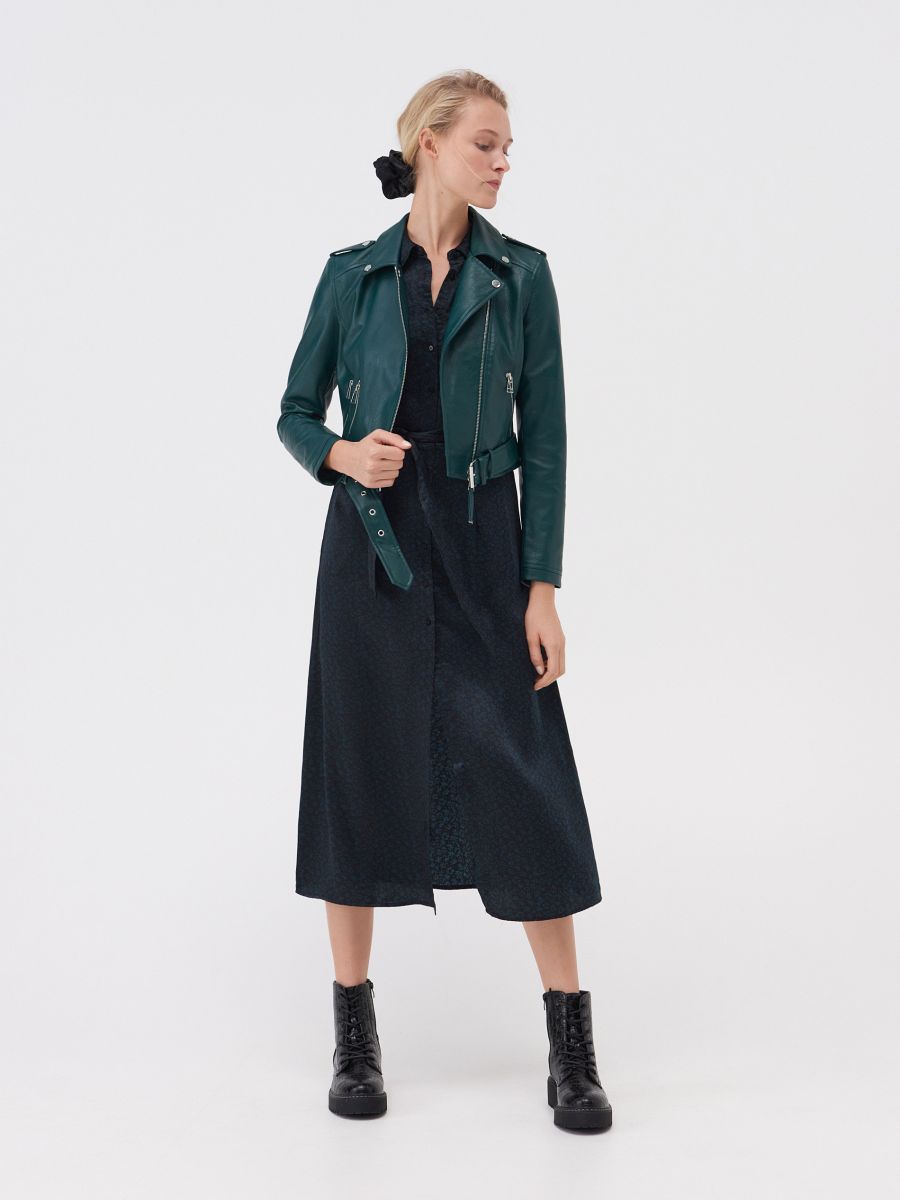 Кожаная Куртка Зеленого Цвета
