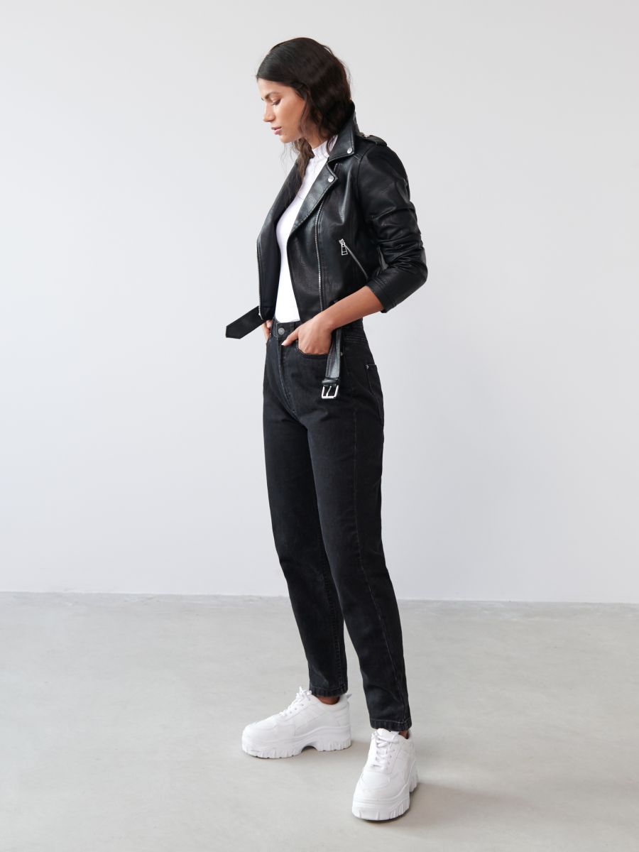 Белые Джинсы И Черная Кожаная Куртка