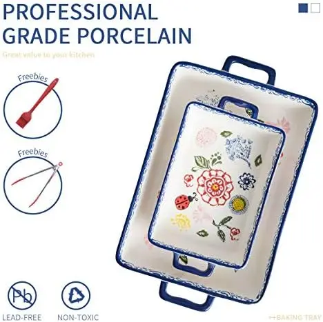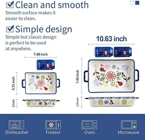 "Baking Dish Rectangular Bakeware Set Baking Pan, 2-Piece Stoneware Hand-Painted Lasagna Pan for Cooking, Cake dinner (Blue, 10.6" * Buy Now With Free Shipping Just For $42