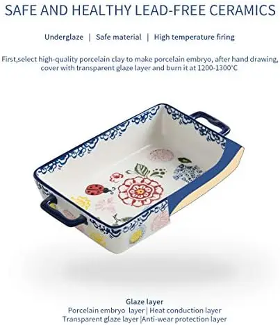 EylNonzdHere you can buy Baking Dish Rectangular Bakeware Set Baking Pan, 2-Piece Stoneware Hand-Painted Lasagna Pan for Cooking, Cake dinner (Blue, 10.6 with free delivery to your post office.