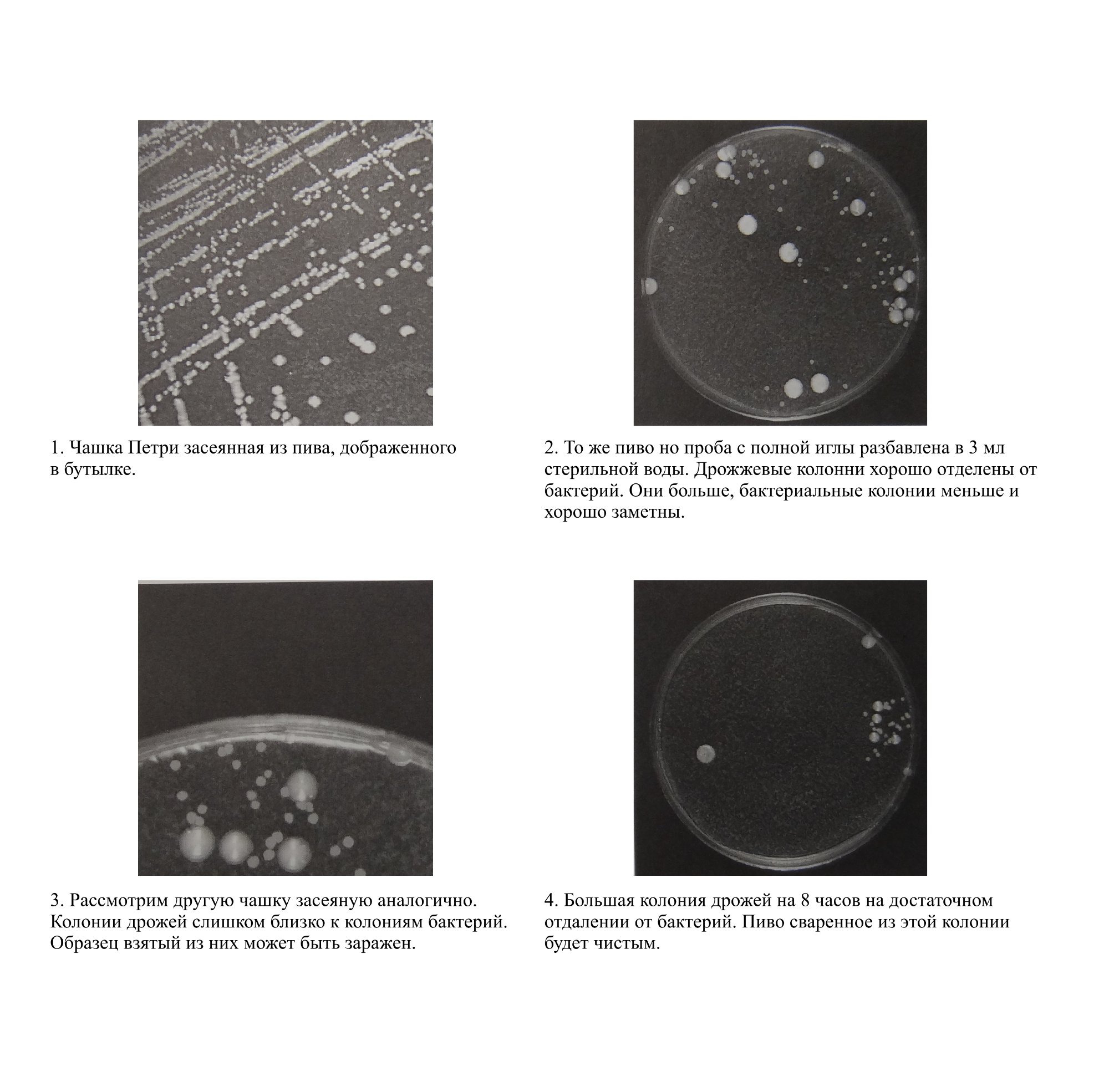 RomanBrewПри засевании чашек так же можно провести тест на наличие аэробных бактерий. Вид бактерий, которые могут расти на агаре из охмеленного сусла. Но на такой среде их можно обнаружить только при сильной концентрации. Если бактерий немного, то они заметны только на средах препятствующих росту дрожжей.
