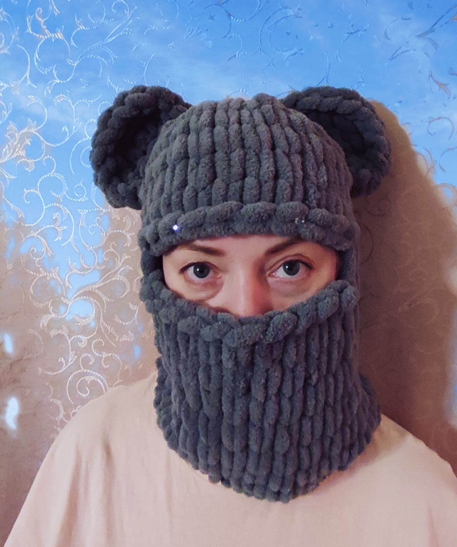 Балаклава с ушками пряжа