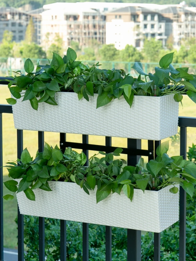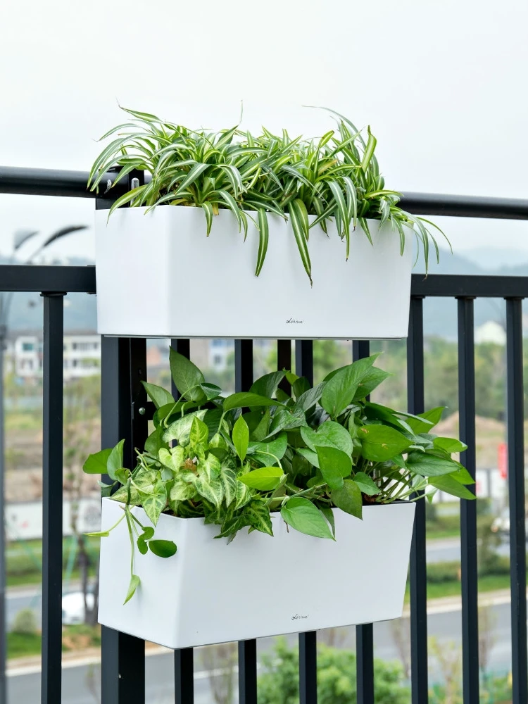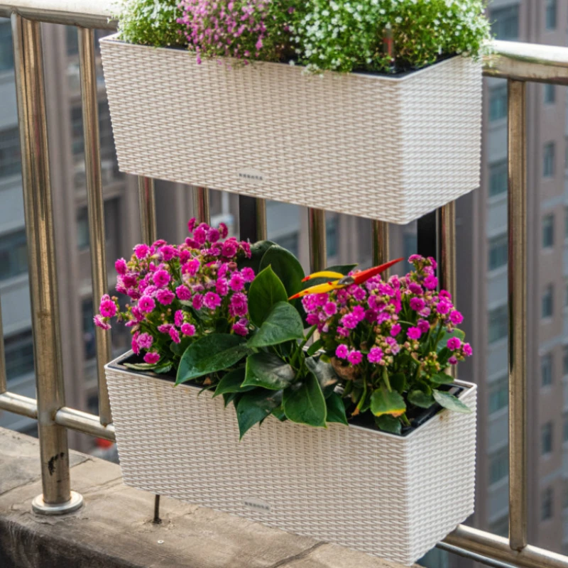 Balcony Hanger Double-Layer Hanging Railing Flower Pot Hook Rectangular Plastic Fence Wall-Hung Basin Large Automatic Water - Купить с бесплатной доставкой