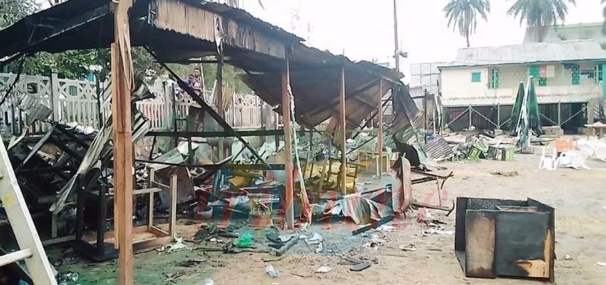 Spectacle de désolation hier, 11 novembre au matin sur le site de la foire du Ngondo, sis au lieu-dit Parc des Princes à Bali (arrondissement de Douala 1er). Deux policiers sont postés devant l’entrée principale : seuls les médias et les officiels ont accès au site. A l’intérieur à gauche, des restes de stands carbonisés jonchent le décor. Des barbecues, des bouteilles de gaz calcinés gisent au sol et plus loin, des parasols en lambeaux s’offrent à la vue.
