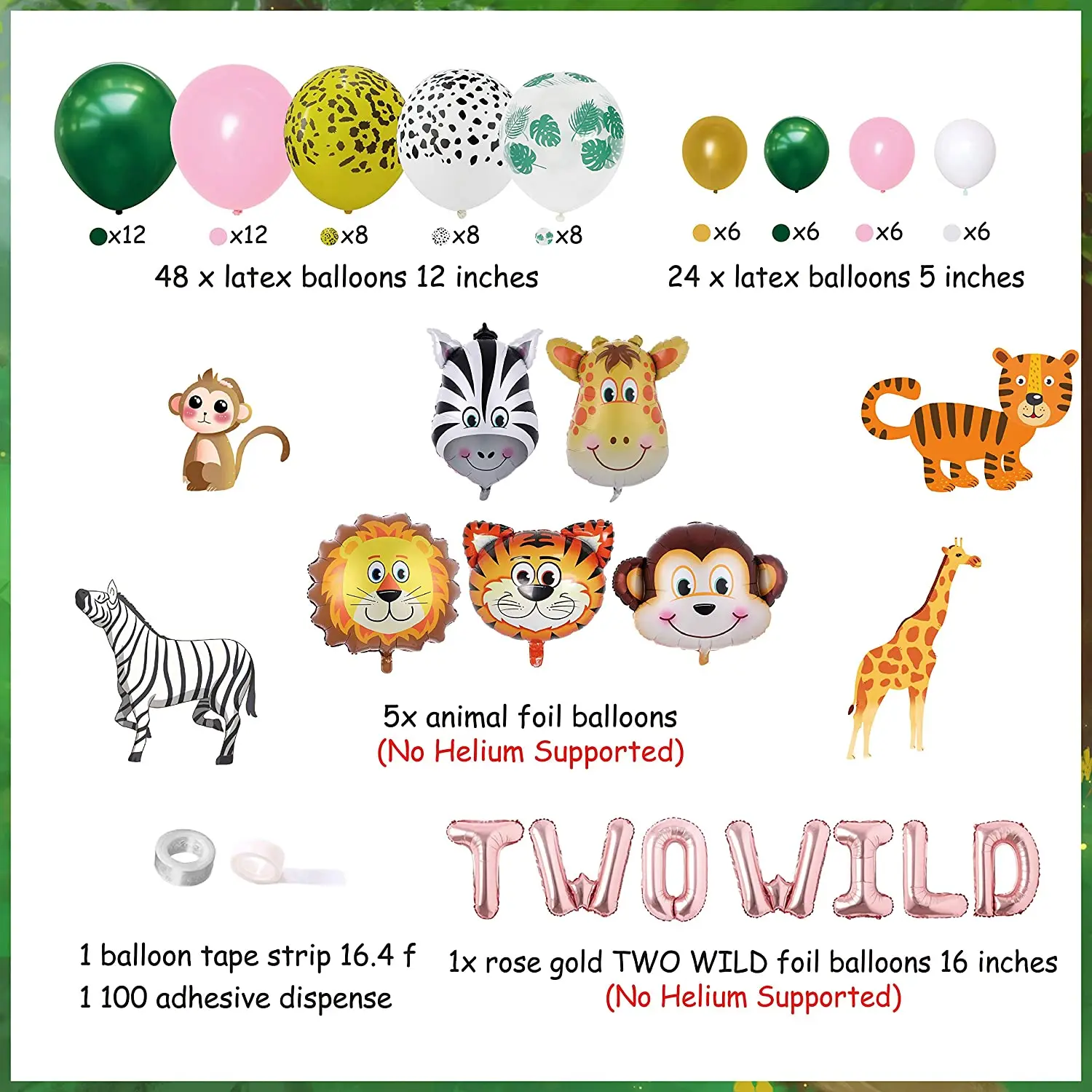 «Balloon Garland Kit Pink and Rose Gold, Animal Balloons for Girl Jungle Theme 2 Year Old 2nd Birthday Decorations» по лучшей цене на рынке! Всего за 16$ (1520рублей)