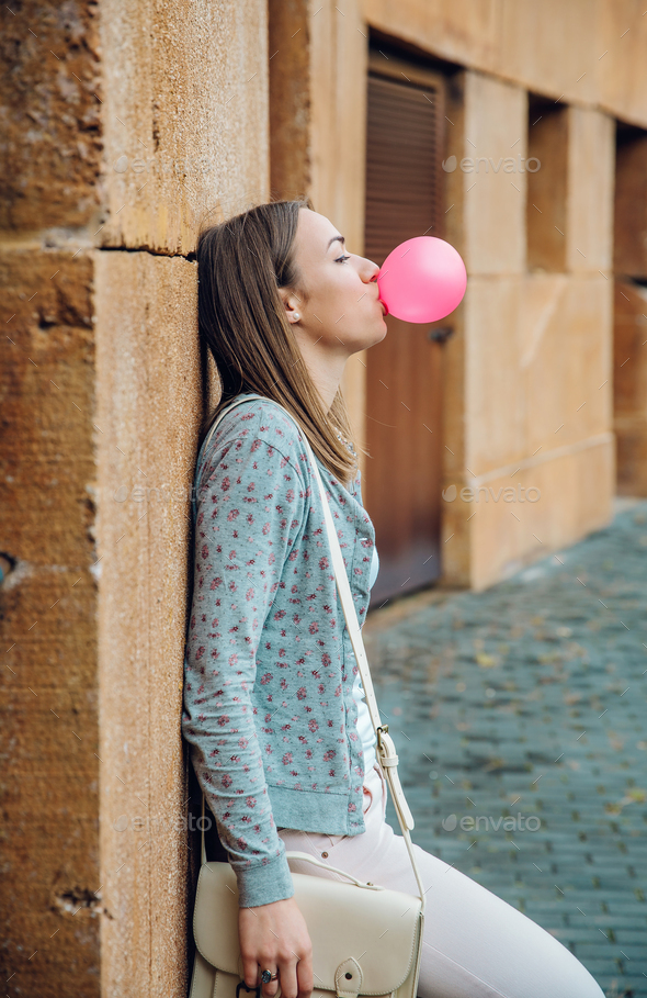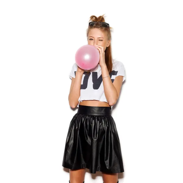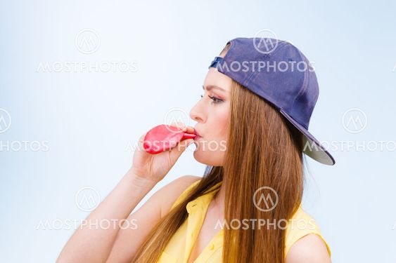 Balloon blowing teen