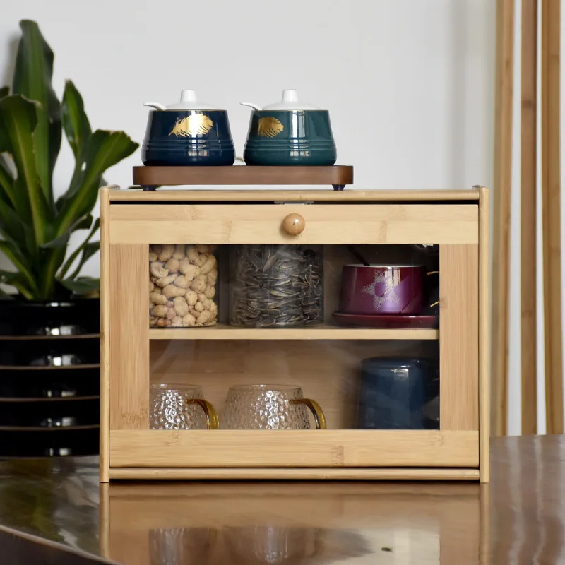 Bamboo Bread Box Storage Box Double Layers Drawer Large Food Containers Kitchen Organizer With Built-in Transparent Window - Купить с бесплатной доставкой