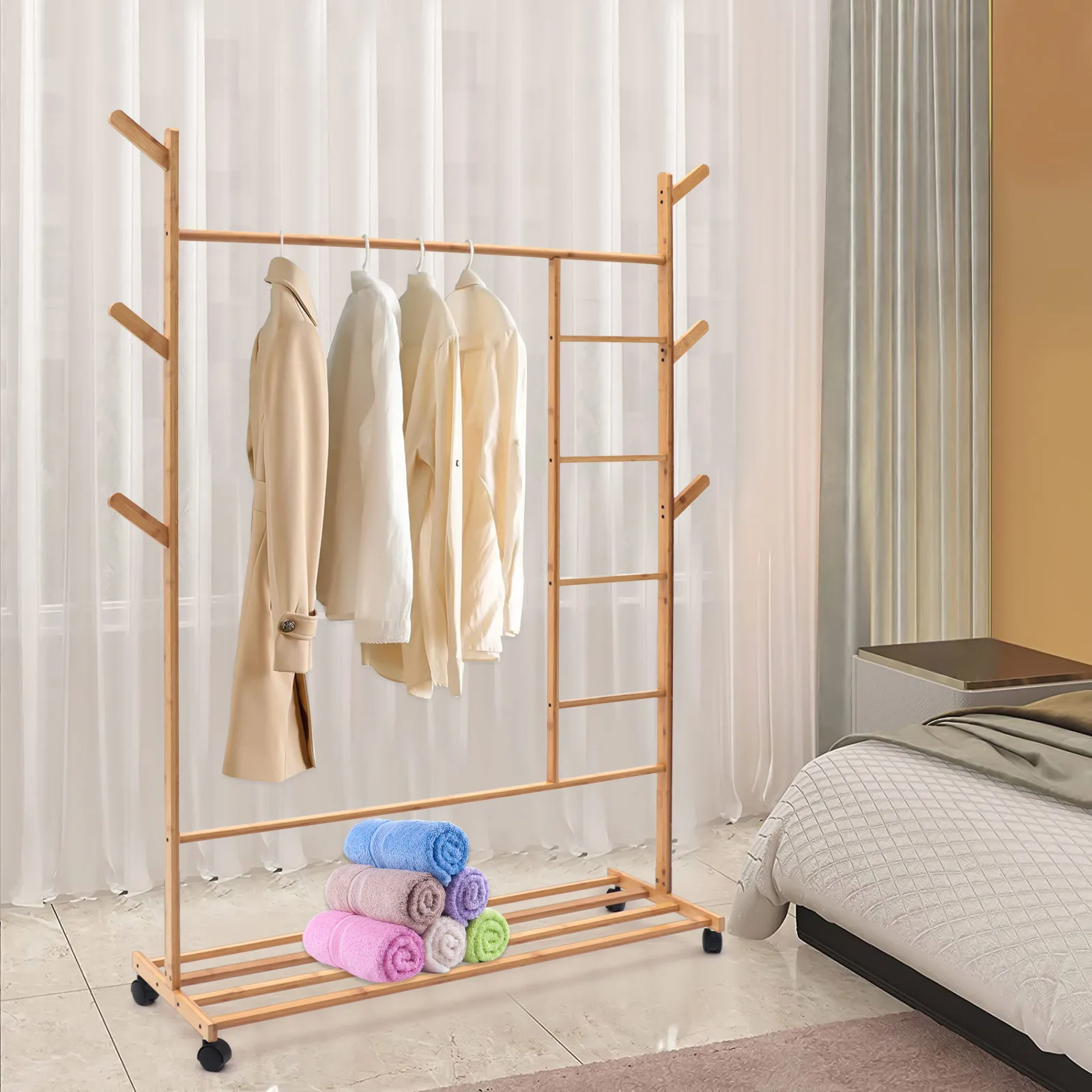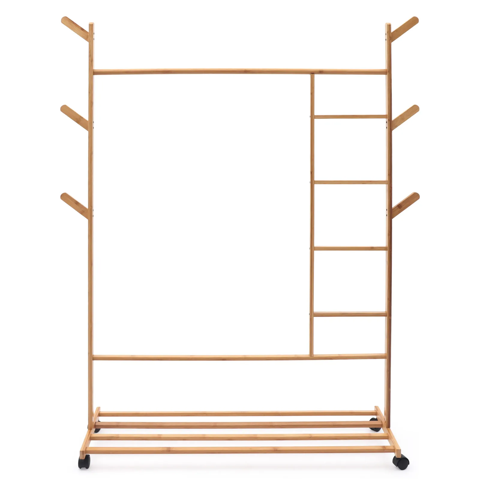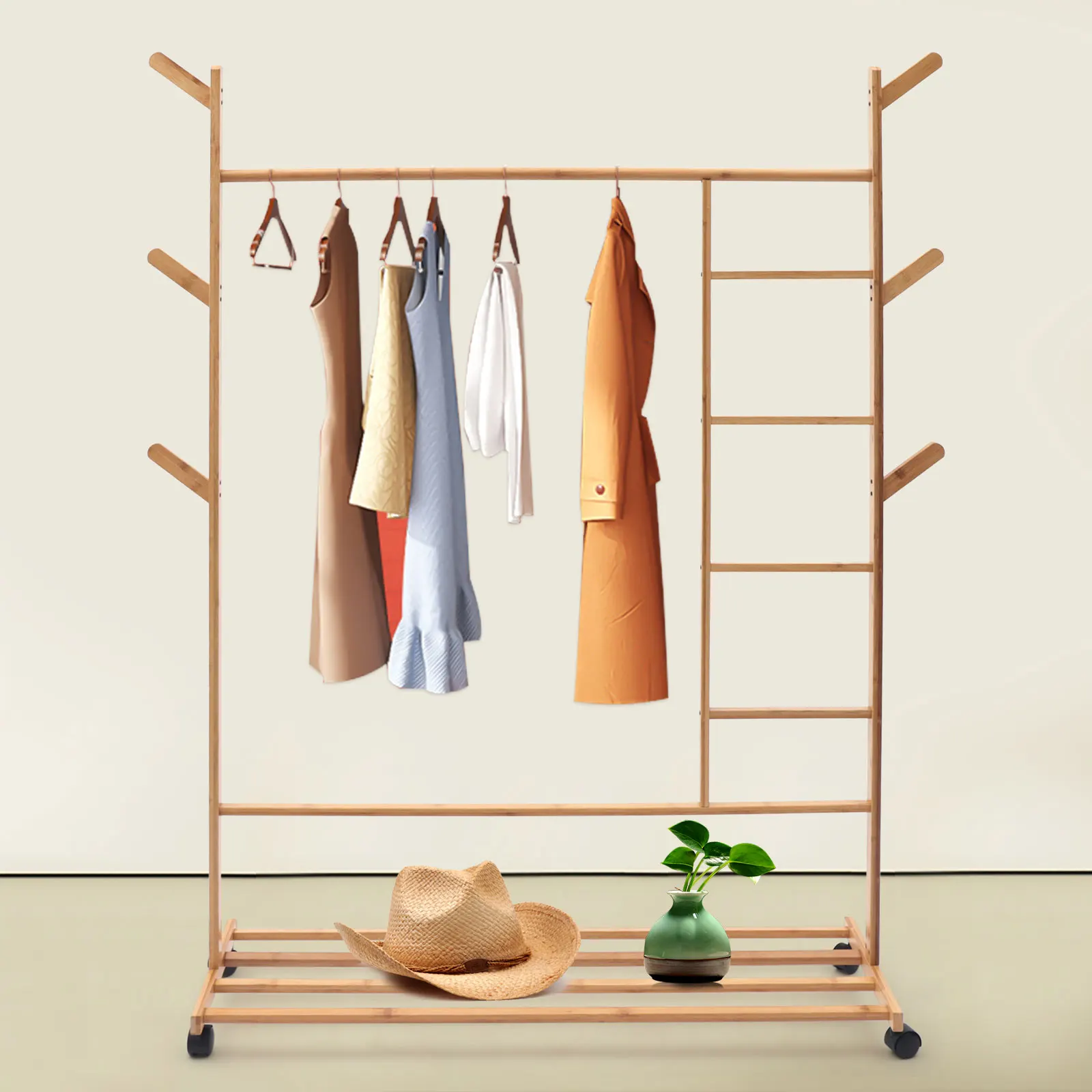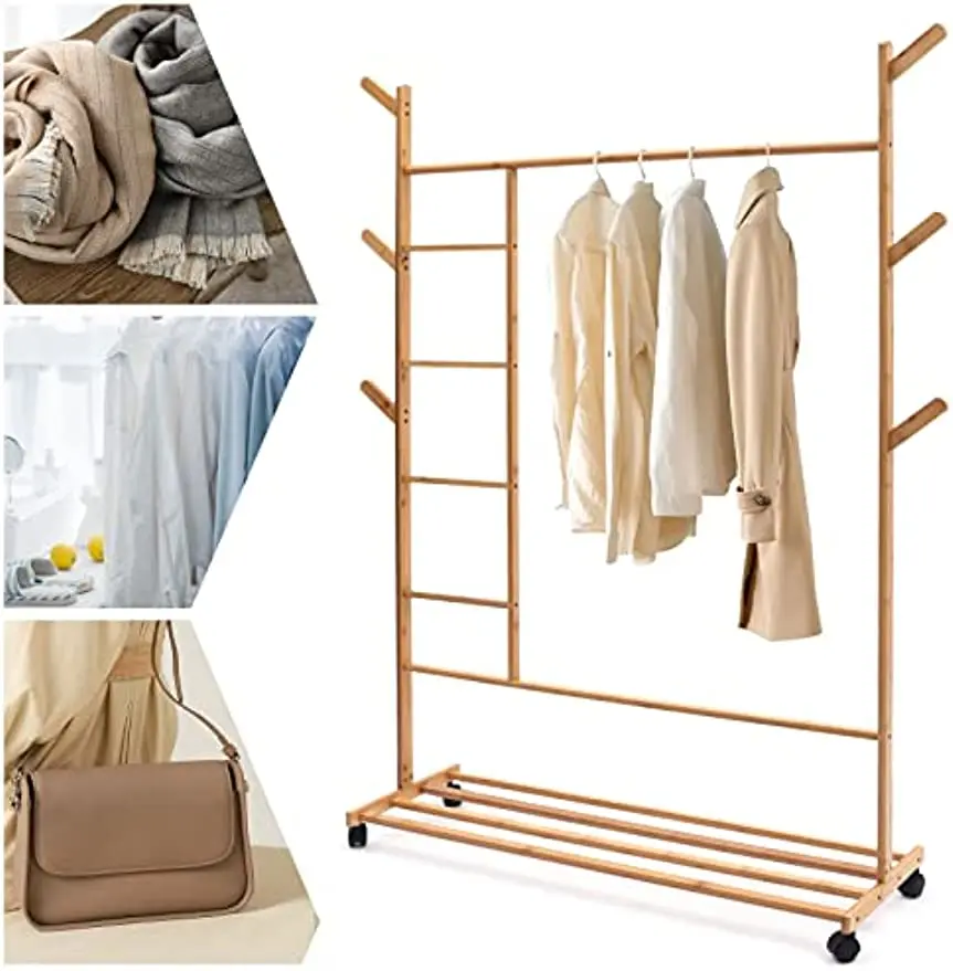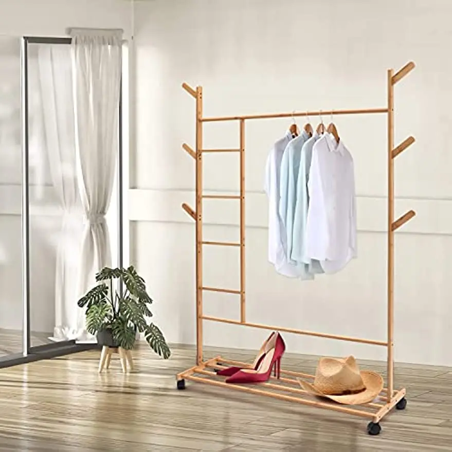 Bamboo Clothing Garment Rack Combo Free Standing Rolling Closet Organizer Shoe Rack with Rolling Wheels Rack for Bedroom - Купить с бесплатной доставкой