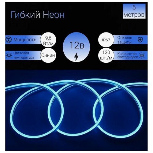 Néon flexible GLS-2835-120-9.6-12-NL-IP67-B blister 5 m, bleu - équipé de LED lumineuses et très efficaces 120 pcs/m, le revêtement en silicone améliore la flexibilité du néon, vous permettant de réduire l'angle de courbure . La classe de protection IP67 permet une utilisation en extérieur et en intérieur. Le néon flexible 12 V est idéal pour créer des lettres et des inscriptions publicitaires, pour réaliser des caissons lumineux et des enseignes, pour l'éclairage décoratif d'intérieur et de meubles. Diodes par mètre - 120 pcs Distance de coupe - 2,5 cm. acheté séparément !