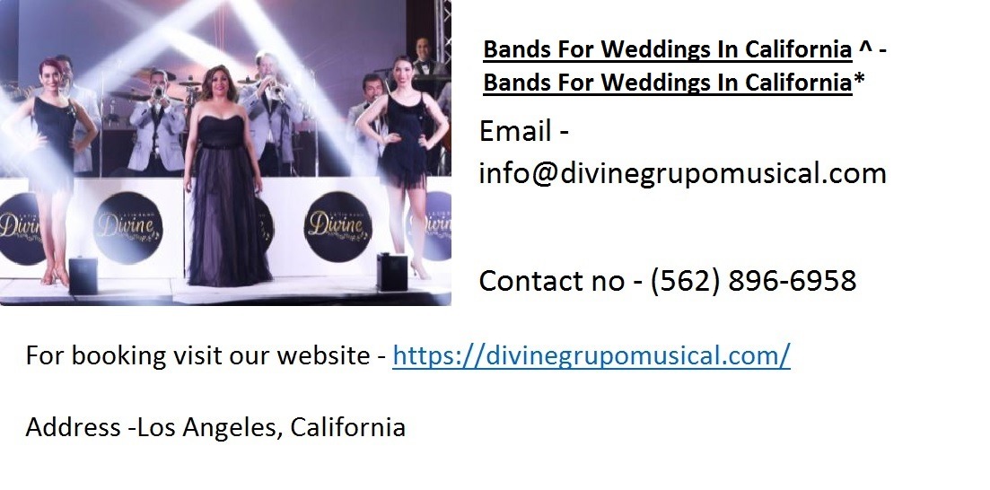 Discover live Bands For Weddings In California give plenty of ability, our bands gladly highlight musicians and best entertainers with latest complete playlists. If you have any question, or would like to know anything about bookings, feel free to ask and you can also visit our Video, Audio & Gallery.