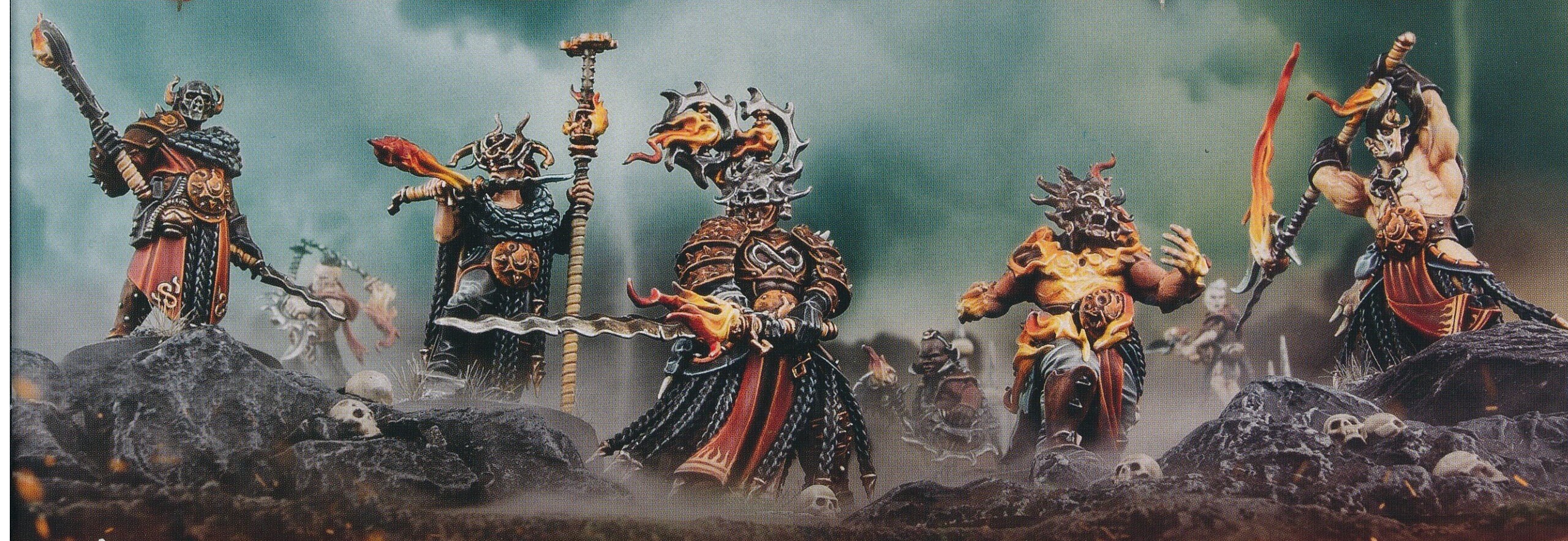 Сыны Огня — это фанатики и подстрекатели, воины-жрецы, стремящиеся окутать все владения очищающим пламенем. Они поклоняются Хаосу в его форме Вечно Пылающего Пламени — злобного воплощения Владения Огня — веря, что плоть и дух закаляются и возвеличиваются в иссушающем горниле его ярости. Они с радостью посвящают себя изучению страстной ярости Акшской магии и даже пожирают плоть стихийных созданий, чтобы направлять эту магическую силу. Сыны Огня охотятся и убивают магмародов и пепельных саламандр, съедая пылающие сердца этих существ в странных ритуалах перед битвами. Недостойные при этом сгорают изнутри, неспособные вынести такой страшный жар. Другие же превращаются в живые факелы. Их оружие извергает мощное пламя, когда они рубят врагов в муках религиозного экстаза. Сыны Огня верят, что пламя, разожжённое охватывающими все владения войнами Всеизбранного, поглотит всё живое, и потому они мечтают принести клятвы верности Архаону и занять своё место в грядущем огненном апокалипсисе.