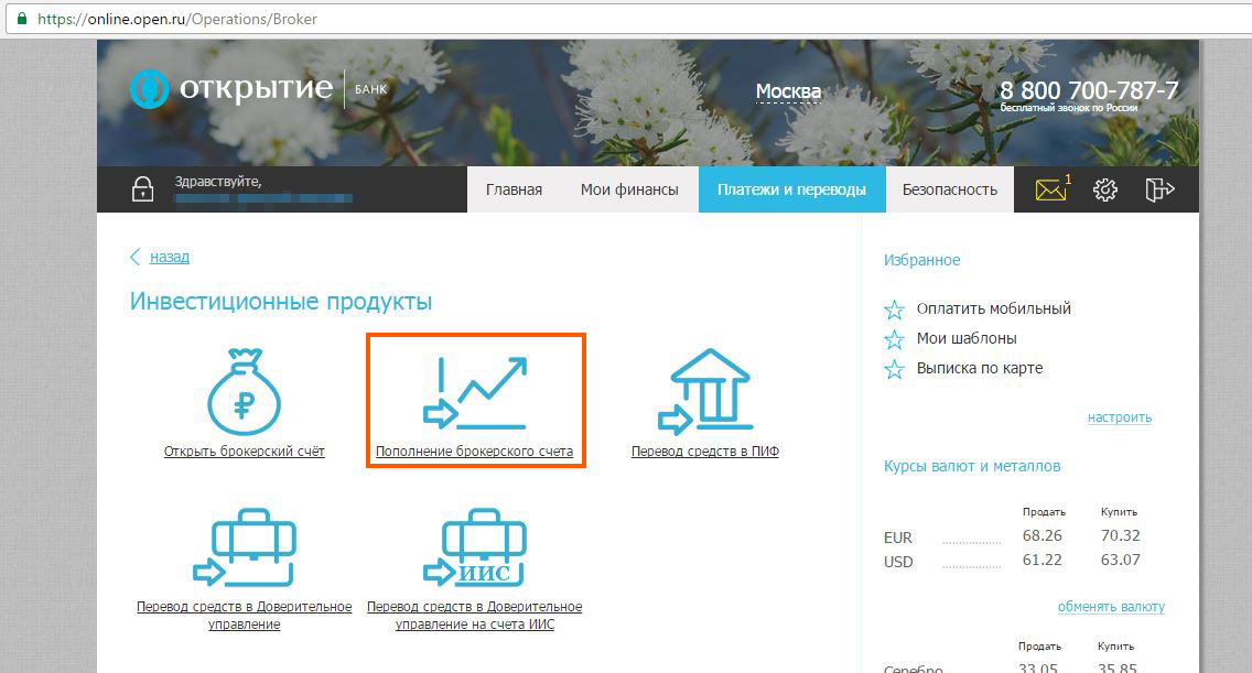 Банк открытие пополнить счет