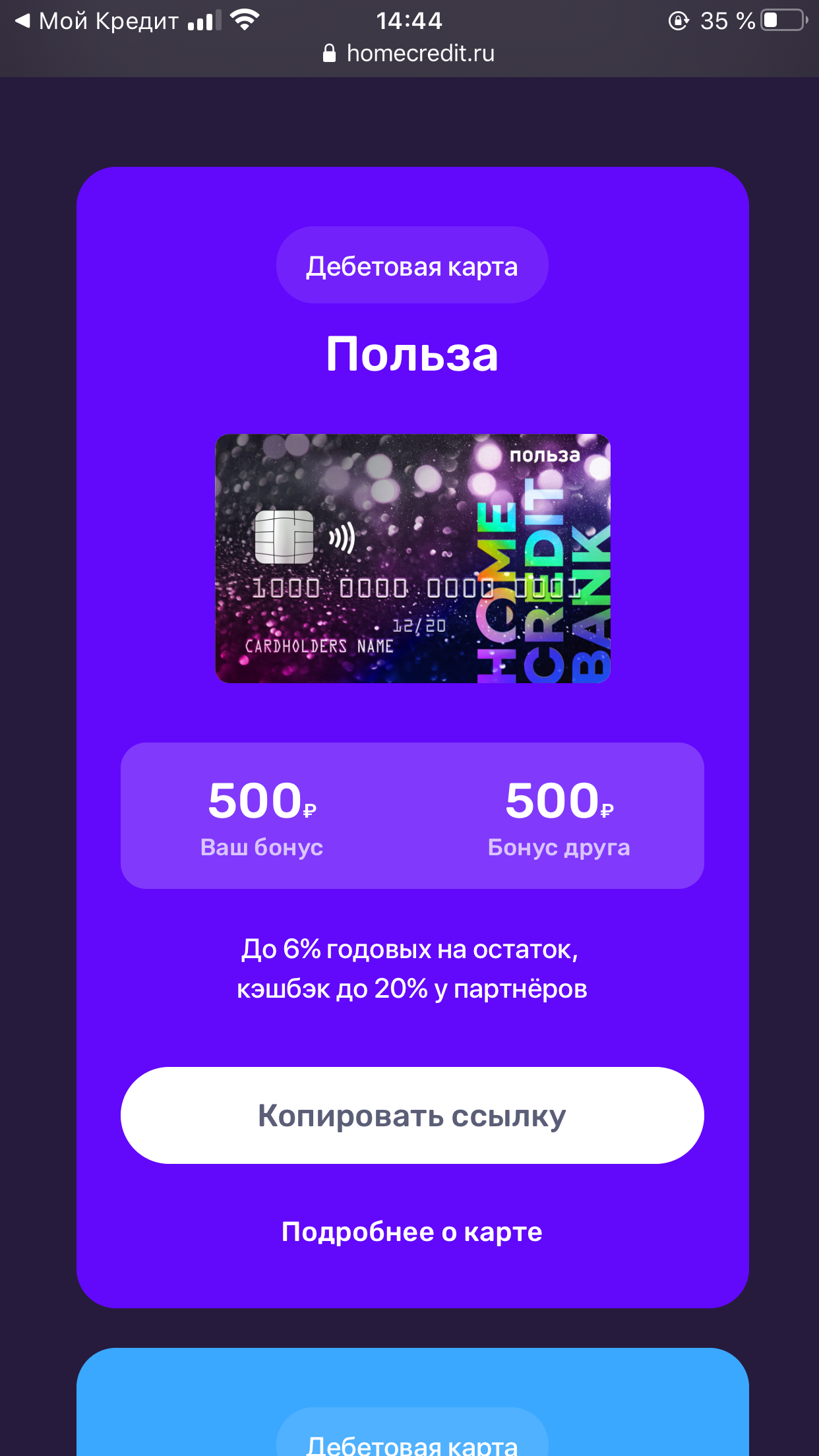 Банк платит за оформление карты